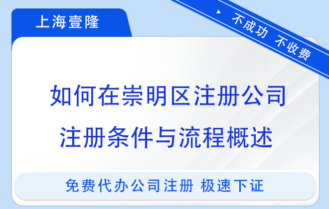 注冊(cè)崇明區(qū)公司需要滿足一定的條件,并按照流程有序進(jìn)行。若您對(duì)崇明區(qū)注冊(cè)公司流程還不了解,可以交給上海壹隆代辦,無需本人到場(chǎng),可提供注冊(cè)地址,歡迎咨詢!
