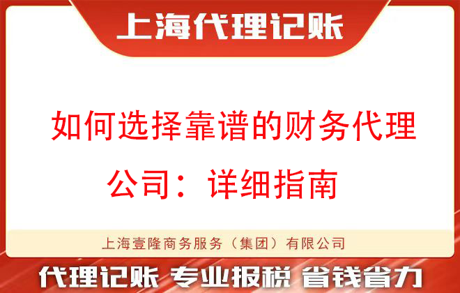 選擇靠譜的財務代理公司需要綜合考慮多個方面。通過明確自身需求、考察公司資質與信譽、比較服務內容與價格、關注公司團隊與專業(yè)能力、考察公司溝通與協(xié)作能力以及簽訂正式合同等步驟,您可以找到一家既專業(yè)又可靠的財務代理公司,為您的企業(yè)發(fā)展提供有力支持。上海壹隆擁有16年服務經驗,200+中高級會計團隊為您一對一服務,歡迎咨詢!